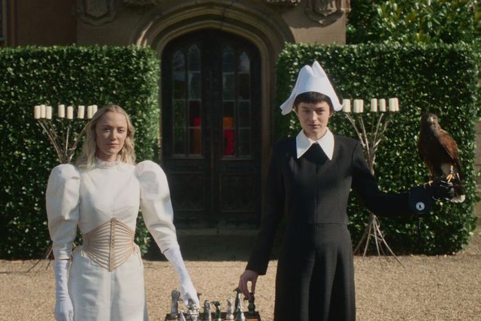 Scheherazade? More like Schehera-Zaddy. It’s time for folklore to get hot again with the queer feminist film 100 Nights of Hero. Based on the graphic novel of the same name by Isabel Greenberg, the upcoming adaptation follows a young bride named Cherry (scream queen Maika Monroe), whose husband (Amir El-Masry) deserts her in the care of the sexy Manfred (Nicholas Galitzine) and her maid, Hero (Emma Corrin). Unbeknownst to Cherry, her husband has bet Manfred that if he can seduce his wife in 100 nights, then he will give Manfred the entire estate. To keep her on track, Hero tells Cherry stories each night, loosely adapting the framework of the classic collection of Arabic folktales One Thousand and One Nights. “Anytime that you need rescuing, I’ll tell a story,” Hero promises in the exclusive trailer. Along with its dreamy main cast, the trailer offers glimpses at Richard E. Grant as local deity Birdman, Felicity Jones as Moon/the Narrator, and Charli XCX as Rosa, a character in Hero’s tales.