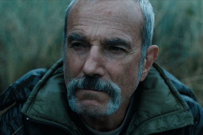 Though he insists he never really meant to retire from acting, Day-Lewis père last appeared on film seven years ago, in Paul Thomas Anderson’s Phantom Thread, which itself came five years after the actor’s previous picture, Steven Spielberg’s Lincoln. As a result, our popular image of him is perhaps not unlike our first glimpse of him in Anemone: a quiet, stoic hermit in the woods, living in a shack with one chair and one bowl, ready to throw an ax at the first intruder. His character, a veteran soldier named Ray, has been off the grid for some time, and to find him, his brother Jem (Sean Bean, who by the way also hasn’t made a movie in some time), has to motorbike out into the middle of a vast and overgrown forest, tear open a secret pouch, register some coordinates, and hike for what seems like days until he finds Ray’s modest woodland lair. Ray might as well be a character out of a dark fairy tale. His warrior’s intuition is like a superpower: He can tell just by the dance of light on his craggy wall if someone is near, and he doesn’t even have to look to identify that person as Jem, who might be a friendly but who brings thoroughly unwelcome news of the world beyond the trees.
