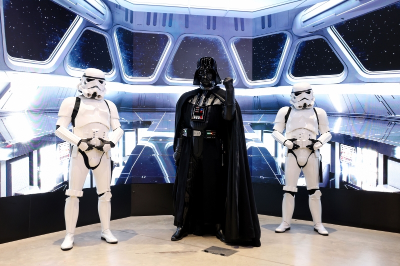 Previously, the company was very invested in setting Galaxy’s Edge in a particular time and place — Black Spire Outpost on the planet Batuu, between Star Wars: Episode VIII – The Last Jedi and Episode IX – The Rise of Skywalker. Now, to borrow a phrase from a different sci-fi franchise, Imagineering is getting timey-wimey with the chronology. Han will be posted up by the Milennium Falcon and/or Oga’s Cantina, Luke will be stomping his Chanel boots in the marketplace, and Darth Vader will be force-choking dads in Grumpy tees.