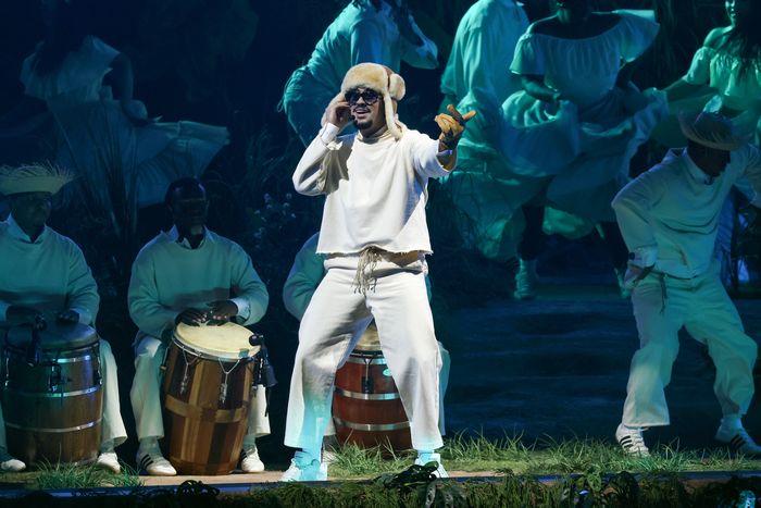 Bad Bunny’s first appearance in the Super Bowl was during the Jennifer Lopez–Shakira Latino Halftime Extravaganza back in 2020 (the NFL’s first foray into Latin culture and maybe the last pre-COVID cultural moment), when he was brought out to perform “Callaíta” and “I Like It” with Shakira. This time around, we can surely expect guests, but I wouldn’t bet on any modern English-language chart-toppers — unless Cardi B hops up from her box to join him onstage for “I Like It”?
