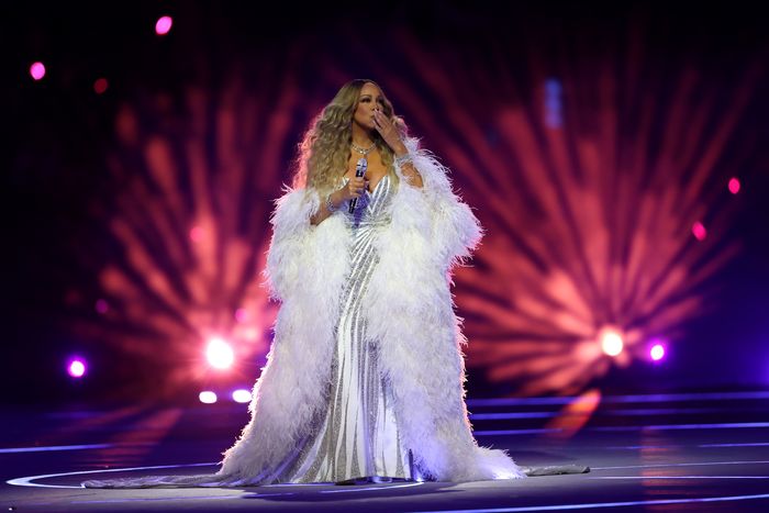 She can belt it out in English and Italian; what can’t she do? For the Winter Olympics Opening Ceremony in Milan, Italy, Mariah Carey did what those in Milan do: Sing in Italian. As she walked toward the center of the stage in San Siro, she was followed by at least five people who helped carry the train of her dress. For her two-song performance, Carey belted out “Nothing Is Impossible” from her latest album in English, Here for It All, and “Nel Blu Dipinto di Blu,” a.k.a. “Volare” in Italiano — the latter was Italy’s entry in Eurovision in 1958 and became a Billboard No. 1 hit in the States. It wouldn’t be a Mariah performance without a high note, which is a sound that is universally understood in every language.