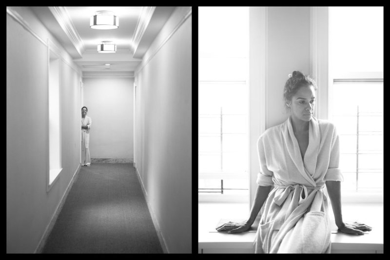 Left: 8:25 A.M. Misty Copeland wakes up at home on the Upper West Side, recentered after a “terrible” tech rehearsal the day before. “It’s a big shift when you’re not used to being onstage. You’re breathing different air,” she says. Right: 8:50 A.M. Copeland has made a point of not developing preshow habits. She wants the hours before a performance to feel as casual as possible: “I’ve always felt like if I get myself locked into a ritual, then I can’t do it; it’s going to mess me up mentally.”