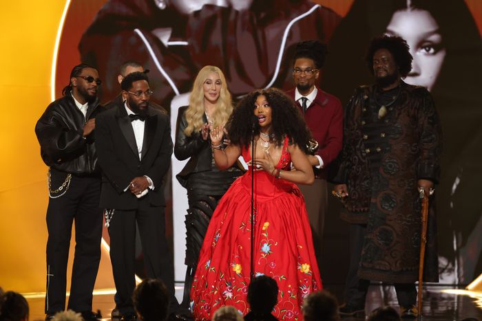 Dean’s sentiment resonated with speeches by heavy hitters across genres and faith traditions throughout the day. At the earlier show, Best Country Group/Duo Performance winner Shaboozey made it known that he comes from a “family of immigrants.” Best Contemporary Christian Album winner Israel Houghton closed with an appeal for unified hope: “We are citizens of a kingdom that cannot be shaken.” “Jesus is not owned by one political party,” Best Contemporary Country Album winner Jelly Roll shouted during his requisite awards-show sermon on the main stage. “We’re not governed by the government,” SZA said as her and Kendrick Lamar’s “luther” pulled Record of the Year. “We’re governed by God.” (She fleshed the sentiment out in an interview after the show: “And, you know, it’s always fuck ICE.”)