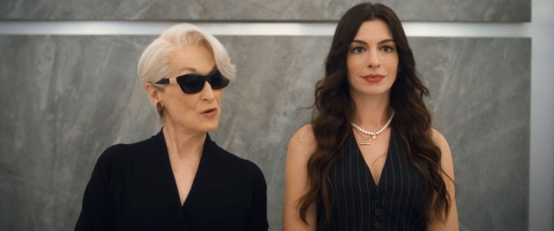 The clip doesn’t reveal much, but it does give us our very first glimpse of Runway magazine’s offices. Unlike its competitors, it looks like the magazine somehow never had layoffs, considering how many people are seen bustling around the office in their chicest footwear. In the clip, Meryl Streep as Miranda Priestly walks the halls of Runway in some spiked red Valentino pumps to the tune of Madonna’s “Vogue,” in case you forgot whom this movie is supposed to be about. Miranda gets into an elevator, where she is joined by Hathaway as Andy Sachs sliding in just as the doors close. “Took you long enough,” Miranda says, as Andy slides on some sunglasses, looking every bit Miranda’s protégée.