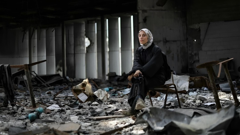 The whole film world at this point knows that Hassona was killed, along with the rest of her family (all ten of them), when Israeli forces bombed her building on April 16 of this year; she was 25 at the time. Her death came not long after the picture had been accepted into the parallel L’ACID section of the Cannes Film Festival, and Farsi includes a scene of her informing Fatma, known as Fatem, about the happy news that their movie will play at Cannes. Her death was a shock, certainly, but having seen the film could we seriously call it a surprise? Much of Fatem’s extended family had already been wiped out, and she had been repeatedly displaced. Her neighborhood is a ruin. At one point, she scans her phone across the small room in which her parents and brothers and sisters are all currently sheltering. Like many of her fellow Palestinians, she was targeted simply for existing so the mere fact of her existence put her in danger.