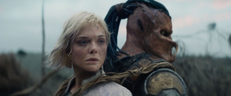 In the relentlessly hostile world of Genna, among the killer tree roots and the deadly telepathic worms and the exploding prickly bubble flower thingamabobs, Dek comes across the sassy, chatty Thia (Elle Fanning), a “synthetic” who’s missing the lower half of her body. She can speak his language and has important information about this planet; she wants her legs back, and he wants to find the Kalisk, so they start working together. Thia was part of a research operation led by another robot, the far more ruthless Tessa (also Fanning), working for Weyland-Yutani, the all-powerful intergalactic company that is also the chief corporate villain of the Alien franchise. Weyland-Yutani wants the Kalisk for its own nefarious weapon-building purposes, and soon Tessa and her army of anonymous androids are hunting down Thia and Dek, who slowly build a bond of sorts. Also tagging along with our heroes is an adorable little monkeylike critter they name Bud.