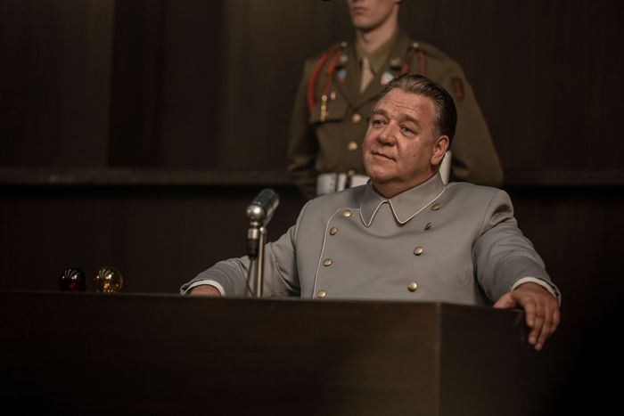 Crowe’s Göring is the culmination of the work he’s been doing over the past 15 years. Nuremberg explores how authoritarian regimes take over democracies — not by making a detailed intellectual case that persuades on its merits but by validating the power fantasies of those who feel shut out. Like his by-then-deceased boss, Adolf Hitler, Göring tapped into Germany’s collective sense of humiliation after losing World War I and being forced to sign the Treaty of Versailles. Hitler and his cronies characterized this as a national emasculation destined to be avenged with a Third Reich that would last a thousand years. Crowe’s interplay with the actors who play the other Nazis held in the Nuremberg penitentiary foregrounds the lie that Germany’s greatest mistake was not being meaner. Crowe seems to intuitively understand how fascism is rooted in fear of not being manly enough. His Göring is a monster whose lethal temper erupts when he’s denied the advantages he seeks. But he presents himself as the boisterous bloke who drinks too much and gets into fights sometimes — who tells great stories and jokes and will always have your back, even when you’re wrong. In other words, the Russell Crowe that some men see in Gladiator, Master and Commander, and American Gangster and think, If that guy were my friend, everything would be all right. It’s the latest in a series of roles that dissect the strong-silent-suffering men with codes in some of his earlier films, and showing how the codes themselves can destroy men or bring destruction to their world.